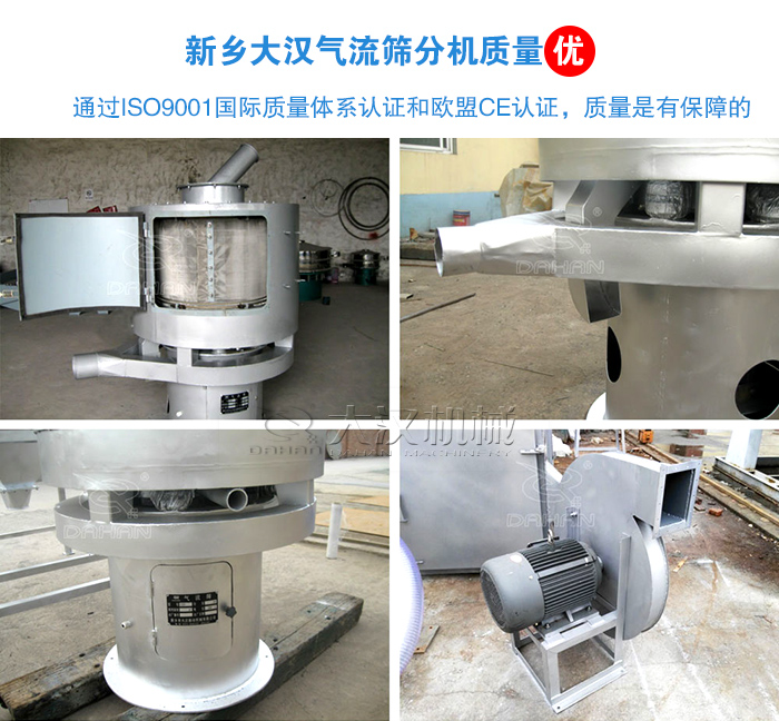 大漢氣流篩分機通過ISO9001國際質量體系認證和歐盟CE認證,質量是有保障的,大漢機械值得您信賴。