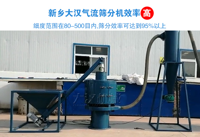 大漢氣流篩分機可對細度范圍在80-500目內的粉狀物料很好的連續篩分,其篩網受旋風沖刷,可自行進行清網,篩分效率可達到95%以上,產量是普通振動篩的5-10倍或更高。